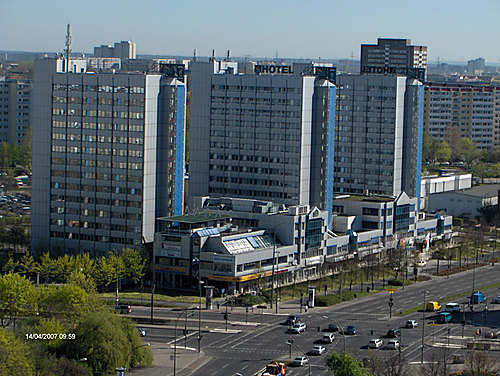 Jeg sad og orienterede mig lidt omkring hvordan Berlin ser ud i Google Earth, og opdager så at der er et geotagget billede over området vores hotel ligger i. Godt nok vidste jeg at hotellet var rimelig stort, men når man så ser det på et billede, så ser det pludselig meget større ud! Vores hotel er det midterste af tårnene: