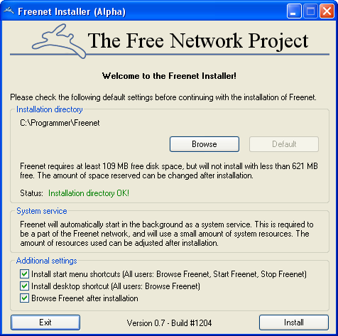 Den foreløbige version kan downloades her: /downloads/FreenetInstaller.exe (siden dette indlæg er den endelige version blevet offentliggjort på Freenet's hjemmeside - find installationsprogrammet der i stedet).