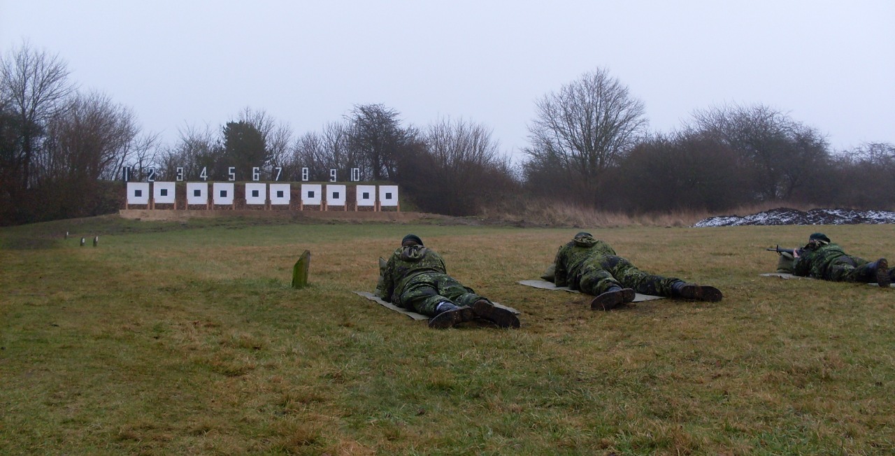 Valget af skydeposition var en interessant øvelse. Det viste sig at der var meget stor forskel på ens synlighed udefra alt afhængigt af hvor meget man gjorde ud af at skjule sig. Specielt sollys kunne ødelægge det selv det bedste dække. Nogle af os kunne ses på hundrede meters afstand, mens andre var så godt skjult at selv sergenten missede dem, og var ved at føre os andre videre til næste øvelse da han blev mindet om at han altså ikke havde fundet os alle sammen endnu ;). De kommende øvelserne i natkamp bliver helt sikkert udfordrende, for det vil være nærmest umuligt at spotte camouflerede folk gemt i krat og skov uden at have dagslys til hjælp.